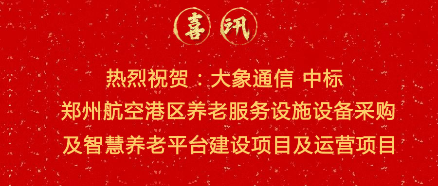 中標喜訊 | 熱烈祝賀:大象通信中標鄭州航空港區(qū)養(yǎng)老服務設施設備采購及智慧養(yǎng)老平臺建設項目及運營項目